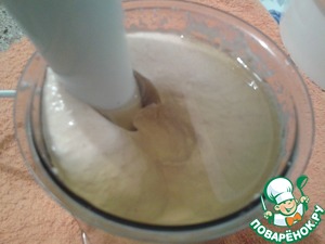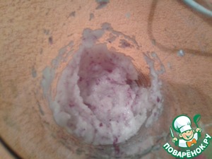 Хлеб отжать, поместить в блендер, взбивать, постепенно добавляя оливковое масло и сахар.