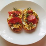 смазываем плавленым сливочным сыром (у меня была Виола с кусочками салями);