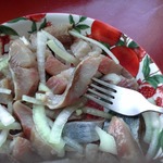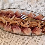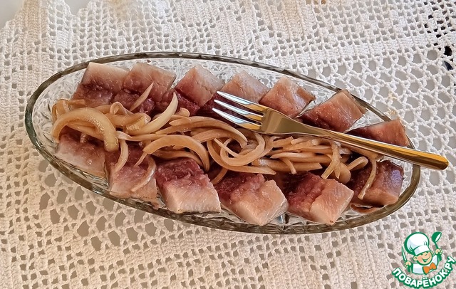 Подаем с красным салатным луком, сбрызнув лимонным соком или винным уксусом.