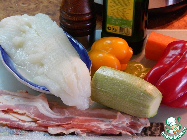 Ингредиенты для «Филе белой рыбы с овощами в беконе»: