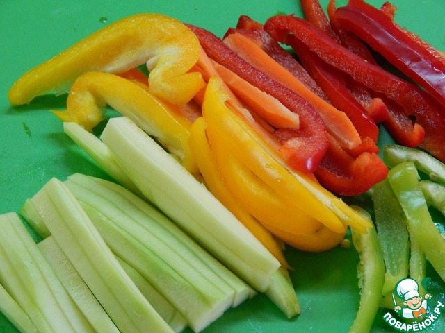 Подготовленные овощи нарезаем соломкой.
