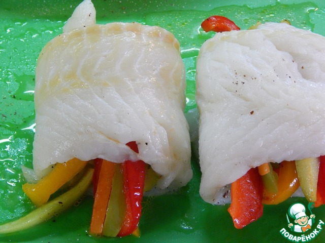 Рецепт «Филе белой рыбы с овощами в беконе»: