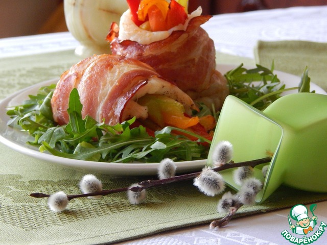 Филе белой рыбы с овощами в беконе
