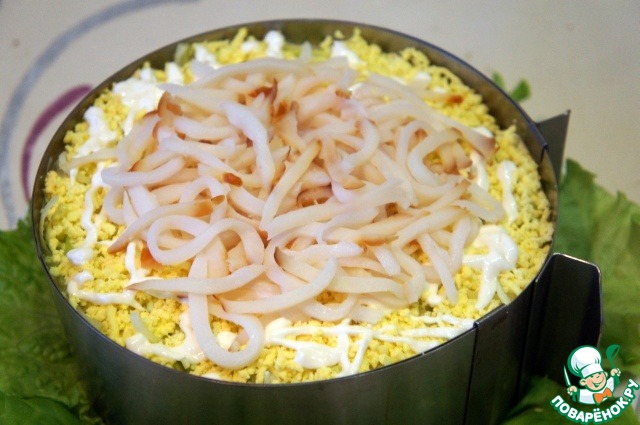 Рецепт «Слоеный салат с копченым кальмаром»: