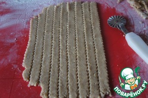 Меньшую часть раскатать потоньше и нарезать на полоски.