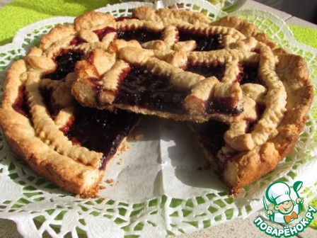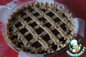 Тесто разделить на 2 части: одну побольше - 2/3 - на основу, вторую поменьше - 1/3 - на решетку. Большую часть немного раскатать и выложить в форму, далее распределить руками по форме, сделав бортик высотой 2 см.