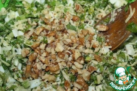 Добавляем рубленые грецкие орехи, перемешиваем.