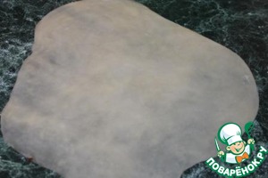 Раскатываем тесто как можно тоньше, если присмотреться, на фото видно, как просвечивается рисунок столешницы. -