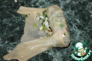 Сворачиваем прямоугольники рулетиком, чуть подвернув края по бокам.