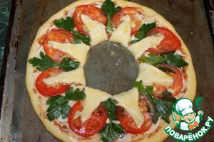 Вкусная пицца - это несложно: «правильное» тесто, вкусный соус и начинка по желанию! Пришла весна, выглянуло лучистое солнышко, и вот такой необычной формы у меня получилась безумно вкусная, сочная, лёгкая пицца. Я старалась приготовить пиццу как можно ближе к итальянскому стилю, т. е. тесто должно быть тонким, начинки не должно быть много, после расстойки тесто раскатывала руками, и как же, оказывается, всё просто, вот он - домашний вкус Италии! Этот вариант эффектно смотрится и произведет впечатление на ваших близких и гостей!!!