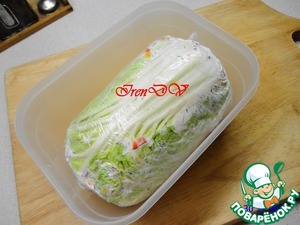 Закручиваем концы, убираем кочан в контейнере на ночь в холодильник.