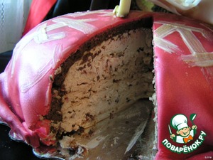 На сахарной пудре раскатать марципан и обтянуть торт. Предварительно массу можно окрасить в желаемый цвет (пищевым красителем).