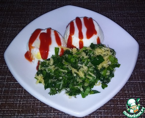 На порезанную зелень высыпаем тертый сыр, солим и перчим по собственному вкусу.