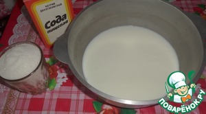 Молоко довести до кипения и понемногу всыпаем сахар, помешивая. Добавляем соду. Варим около часа на маленьком огне. Помешиваем периодически через 5-10 минут.