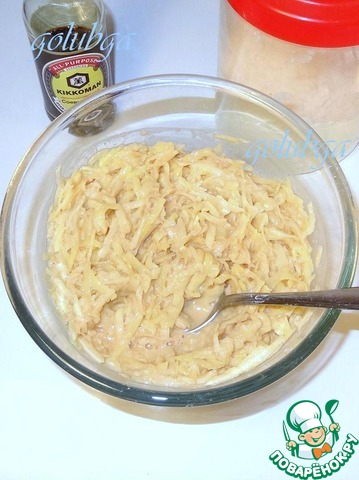 В картофельную массу добавить муку, соевый соус Kikkoman (1 ст. л.), хорошо перемешать и сформировать тонкие лепешки.
