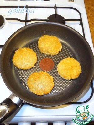 Жарить котлеты на масле с двух сторон, на разогретой сковороде до золотистой корочки. Котлеты хорошо жарятся, не разваливаются.