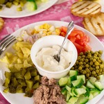 Кстати, майонез можно разбавить сметаной или вообще сделать салатную заправку на основе сметаны, французской горчицы, соевого соуса и лимонного сока.