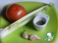 Пока "кастрюлька" нам варит, займёмся "заправкой". Для "заправки" я взяла помидор, сельдерей, чеснок и смесь "итальянские травы".