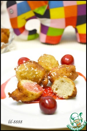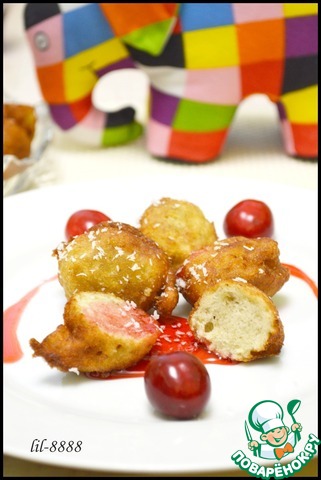 Подавать пончики горячими с ягодным соусом, посыпав кокосовой стружкой. За рецепт спасибо (bellacucina)