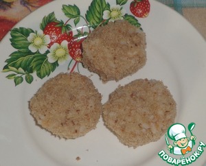 Формируем биточки и обваливаем их в панировочных сухарях.