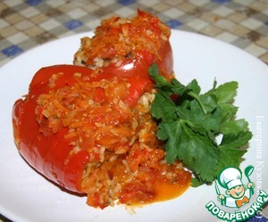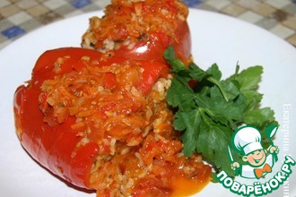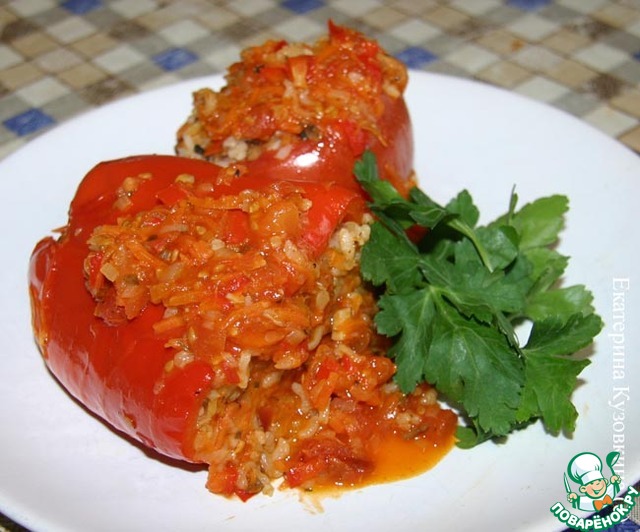Перцы перед фаршированием и тушением нужно опустить на одну минуту в кипяток. С томатами эту экзекуцию проводить не нужно.