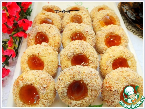 Привет всем! Сегодня у нас печенье - с богатым орехово-масляным привкусом и потрясающим абрикосовым джемом. Очень вкусные! Рекомендую непременно их попробовать. Я осталась от них в полном восторге! Рецепт Ирины Петруши (с моими небольшими изменениями)