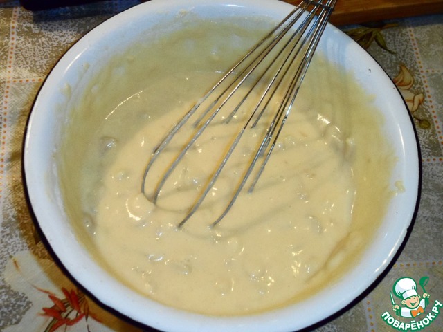 В другой миске хорошо перемешать молоко, джем, половину натертого корня имбиря, яйцо и растопленное масло. -
