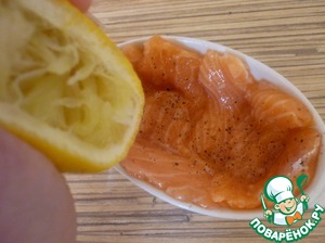 Слегка сбрызгиваем нашу рыбу лимонным соком (я добавляю около 1 ч. л.)