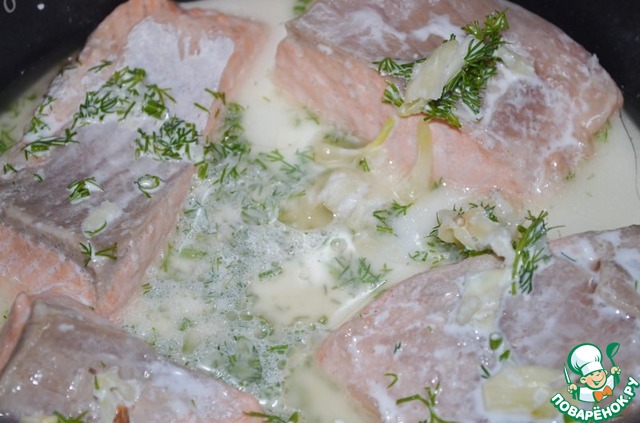 Рецепт «Семга под чесночным соусом в мультиварке»: