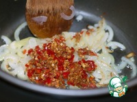 Растолочь в миске чеснок, сладкую паприку, соль, очищенный от семян и мелконарезанный перец чили.