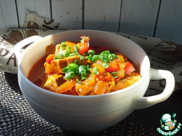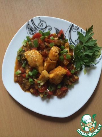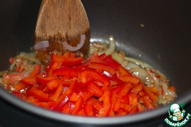 Перец сладкий предварительно запекла в духовке и сняла шкурку ,в остальном все по рецепту . Очень вкусно!!!