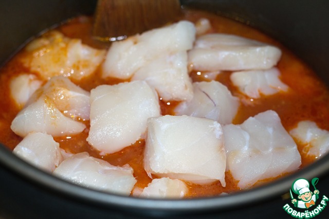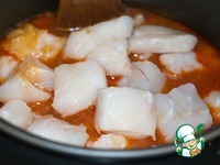 Добавить крупно нарезанное филе трески. Готовить до окончания программного времени. |
