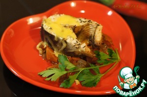 Дно чаши для мультиварки застелить фольгой (с бортиками). Смазать оливковым (или другим растительным маслом). Выкладываем слоями: лук, морковь, перец сладкий, помидор. Сверху овощей выкладываем порционные кусочки рыбы.