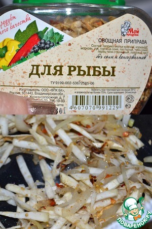 Добавляем специи (я брала специальные специи "Для рыбы"), вы можете добавить свои любимые специи. Перемешиваем и жарим еще примерно 5 мин., периодически мешая. Отключаем МВ.