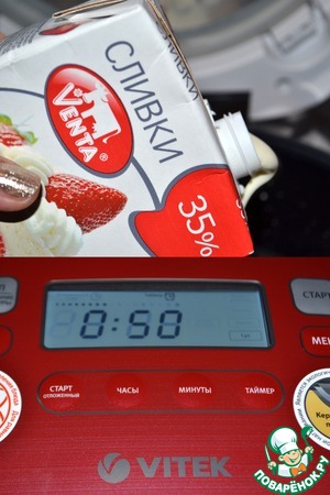 Добавляем сливки, солим, перемешиваем. Выбираем программу "Суп" и готовим до окончания программы.