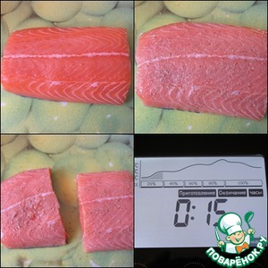 Филе семги промыть, обсушить и разрезать на порционные куски.