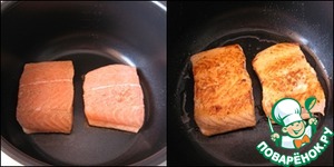 В разогретую чашу выложить семгу и обжарить ее с обеих сторон до румяности.