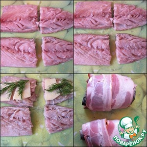 Приправить рыбу солью, черным молотым перцем и горчицей. Сверху положить ломтики сыра, на сыр - укроп. Накрыть вторыми кусочками филе.