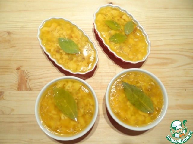 Украшаю конфи лавровыми листочками и убираю формочки в холодильник примерно на 30-40 минут.
