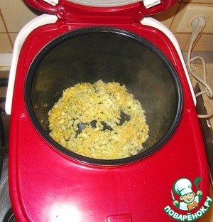 • В режиме "Поджаривание" подрумянить лук на растительном масле.