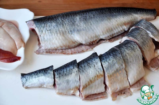 Сельдь чистим - отрезаем голову и убираем внутренности. У меня безотходное производство - использую и икру, и молоки.