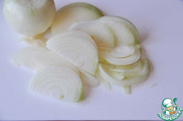 Лук нарезаем полукольцами.