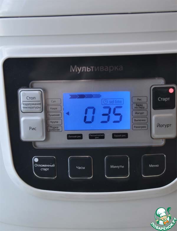 Выбираем режим "Тушение", выставляем время - 35 минут.