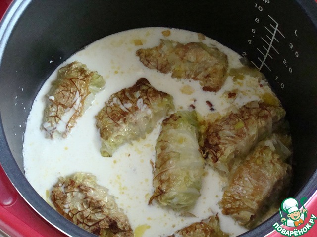 Только-что приготовила, слов нет! Что вообще очень понравилось, это "упоковка голубца", не разваливаются, даже при помешивании. Я внесла свои коррективы, т.е. ножом не срезала, а отбила молоточком, затем сложила в стопку расправленные листья, поместила в посуду и залила кипятком, 30 секн. с одной стороны и также всю стопку шумовкой перевернула с другой стороны. Листья стали податливей и очень хорошо упаковывались. Поскольку кальмара и креветок не было я добавила 1 спелый помидор, переслаивая голубцы луком и мелко резанным помидором. Сметану я развела небольшим количеством воды (150г.), а поскольку помидор был большой и спелый жидкости было достаточно. Теперь о фарше, я делала из телапии (последовательность та-же). Я к сожалению, не могу есть жирную рыбу. В мультиварке у меня их получилось на 2 слоя. Но настолько вкусно и нежно, что удивляюсь как я не додумалась делать голубцы из рыбы, да и вообще из другой капусты. Теперь и классические (мясные) буду только так готовить. Огромное спасибо за рецепт! Я уже готовила по вашим рецептам, к примеру, мясной орех. Вы прирожденный кулинар! Я думаю из форели или семги, это будет просто эксклюзив будет. Забыла, что в фарш я добавила (слегка) мускатного молотого ореха и щепотку пряной сушеной зелени, а в сметанный соус добавила столовую ложку соевого.