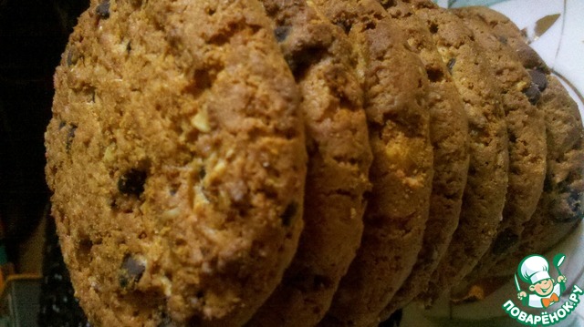 Кладем в тесто шоколадные капли. Если у вас их нет, то просто возьмите темный шоколад и порубите его крупными кусочками. Посолите.