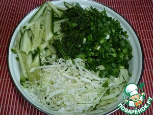 Капусту, огурец, лук, укроп - помыть и обсушить.
