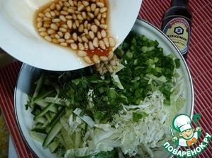 Так сложилось, что каждую весну я делаю салат из пекинской капусты со свежим огурцом и с зеленью. Есть мы его готовы чуть ли не каждый день (видимо, сказывается по весне нехватка витаминов). Поэтому к салату и прикрепилось название "Весенний". Но, если ингредиенты самого салата много лет ни разу не менялись, то ингредиенты заправки много раз подвергались изменениям и дополнениям. И вот уже третий год заправка именно в том виде, как я расскажу ниже. Хотя, нет! лукавлю! В этом году заправку тоже постигло одно изменение. Вместо соли - соевый соус ТМ Kikkoman. И я уверена, что это последнее изменение!