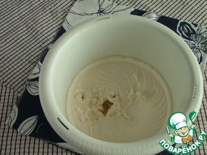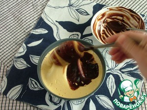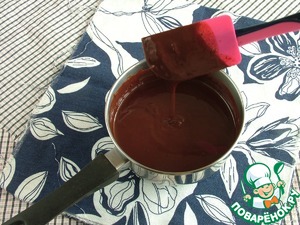 Сироп для пропитки готовим из 90 г воды, 25 г сахара, 13 г порошка какао. Варим, остужаем и добавляем 20 г коньяка.