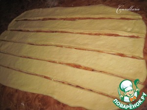 Нарезать полосками шириной в 6 см. -