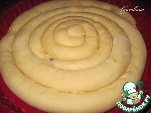 В форму для запекания, начиная от центра, уложить в виде спирали полученные "колбаски".